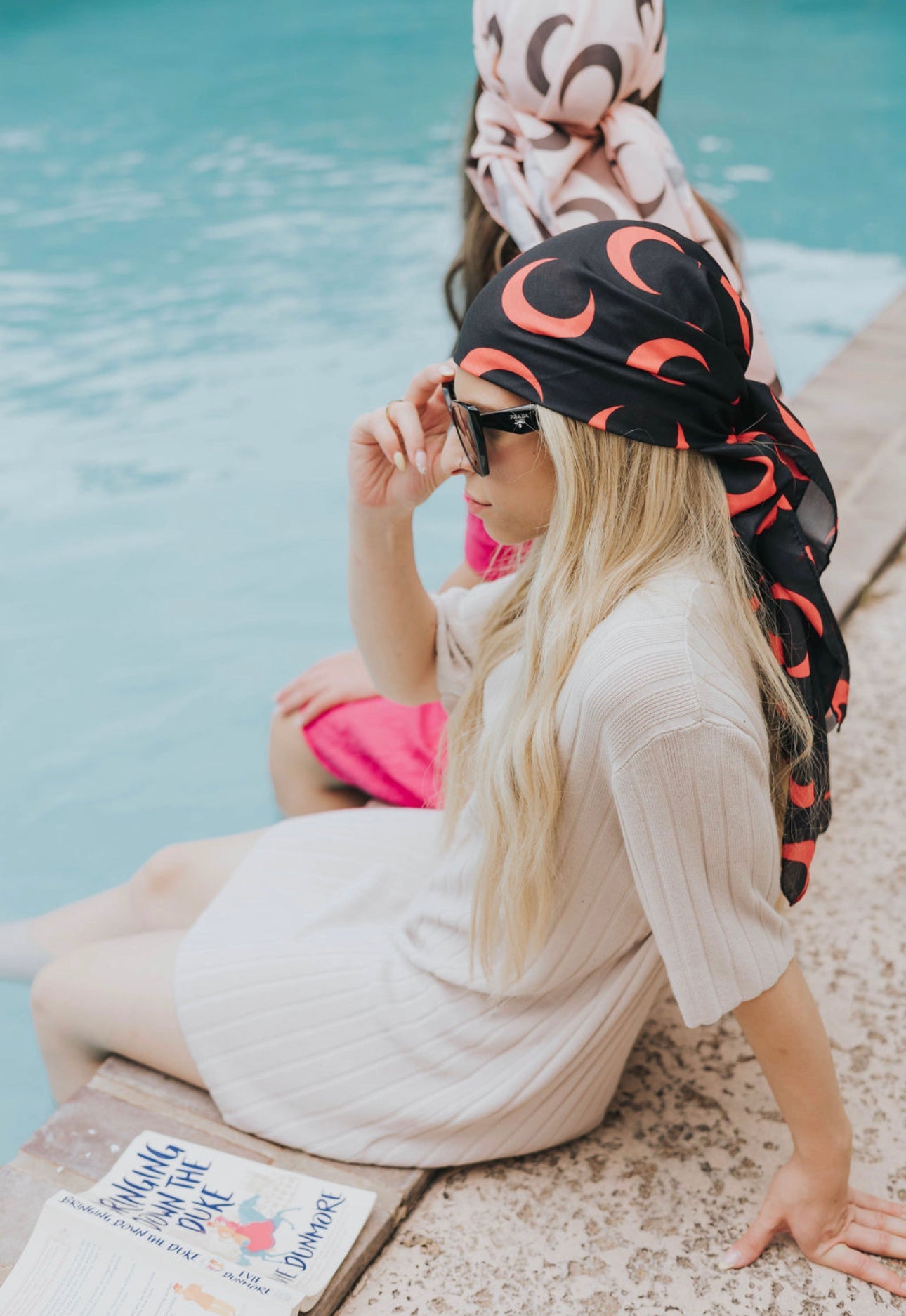 This fabric is lightweight and luxurious, we spent months sourcing a silk fabric that is thin and has some grip to it - this is not your standard silk headscarf that will slide right off!